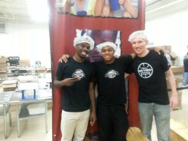Every one of the days on this 25 day adventure have been wonderful to say the least but if I had to pick a favorite this one was it.  What started out as a challenge for myself had turned into a movement.  Well, a very small one but it had lit a spark in couple of my friends.  It was like the pay it forward idea came alive.  Sean and Delvon wanted to join in and do what they could give back their time during the season.  Sean has always been an inspiration for the efforts he does for the homeless.  Sean and Delvon were also part of my team with Ultimate Hoops Chicago and brought up the idea of going to Feed My Starving Children as a philanthropic effort.  I told you I’d be back!  It was a true honor and pleasure making meals side-by-side with them.  We laughed a ton and brought a lot of enthusiasm to the effort and gave hope to the kids in South Africa. 102 boxes were packed to make 22,030 meals to feed 62 kids for a year!  Another late thanks to Delvon and Sean!