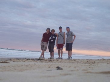 forest and there really was no clear path. The forest was thick and you could easily get lost. We walked through the tree area till we reached a little valley between rocks like on the hills. We went up the hill that was like 10 minutes. It was very tiring. We got to the lookout and it was like jagged rocks that you’d stand on on a cliff but there was a magnificent view. It was very dangerous. Then we tried to find our way back down. We got back to the bottom and made our way to Howard’s Hole. We went near the edge in between two rocks. It was icy and you had to be very careful. You couldn’t even see the bottom. It was like 176 meters down. The top of the hole above us had to be like 300 feet up because you could see the trees at the top and they were small. Then we made our hike back. Bob (the dad) got a ways ahead us guys found a pond that had ice frozen over on top so we were throwing logs and rocks on it trying to break it. Finally we got a big log like 10 feet long and heaved that in and broke it. Then we caught back up and got out fo the forest and had some Milo and cookies. We then got in and drove back down the hill and went into a town and had some ice cream. Then we headed home. We watced TV for a few minutes and then Erin (the mom) had dinner ready. It was corn, peas, mashed potatoes, and roast beef. So we ate up and then we got the spot light ready and the 12 gauge. Adam, Daniel, Damian, me got in Daniel’s SUV and went possum hunting. It was cool because Daniel drove like a teenager gunning it through the winding driveway paths up and down hills. We finally spotted one. We got out and they shined the light on it. Adam took a shot and hit it a little. Then I shot at it and killed it. We took a picture of us holding it and I had a a cigar in my mouth, not lit of course. Then we went back home and went out hunting on foot but had no luck. We got back in from the cold and had some Milo again. We then talked with Erin and Bob. The 19 year old daughter was then home and we met her. She was very pretty. Everyone in the family was good looking. They were like the perfect home stay family. Exactly what I wanted. It was like normal but in a different country. Then we went to the other house to go to sleep. Me and Adam talked with David for a little bit because he stayed in the same room as us. Then it was lights out and that pretty much ended our fun with our home stay family.
