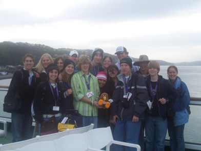 downtown Wellington and we had time to go to a bunch of shops. Paige, Brandi, Cameron, and Me found a Kodak store to get my pics put on a CD. Then we found a sweet lower price clothing shop called Jay Jays that is really popular in Australia because it’s an Australian store. Then we went to eat at a New Orleans restaurant called the Quarter. Me, Jacob, Cameron, and Nathan were ambassadating with all the waitresses and asking them to yell out, “Can I get a What, What?”. One of them eventually did and we answered it was really cool to talk with Kiwis. Then we went to the music studio and Kit showed us how to use the program Sony Acid program and then made our own sound clip using a whole bunch of different types of music. Now we can go on the website and download everyone’s music. We then met up with the other group who did a news telecast. Then we went back to the hotel and went into the game room and watched the news video as a group because they gave us a dvd. Then we got ready for bed. That caps off day 5.