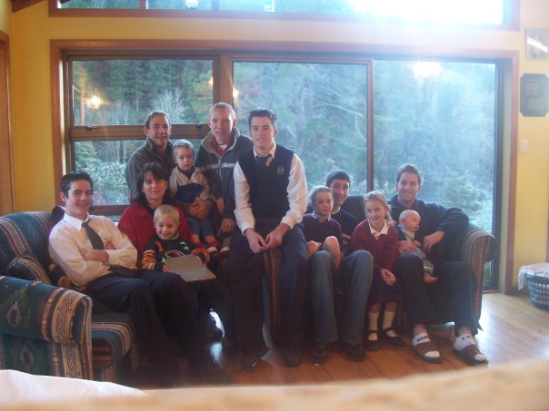 We woke up and got ready. Me and Adam went in the house for the last time to eat breakfast and give our host family our gifts to them. We then got in a big group and put my camera on a chair on top of the table and set the timer. I rushed over to the group and Adam, Me, and the Powick family got a picture taken together.