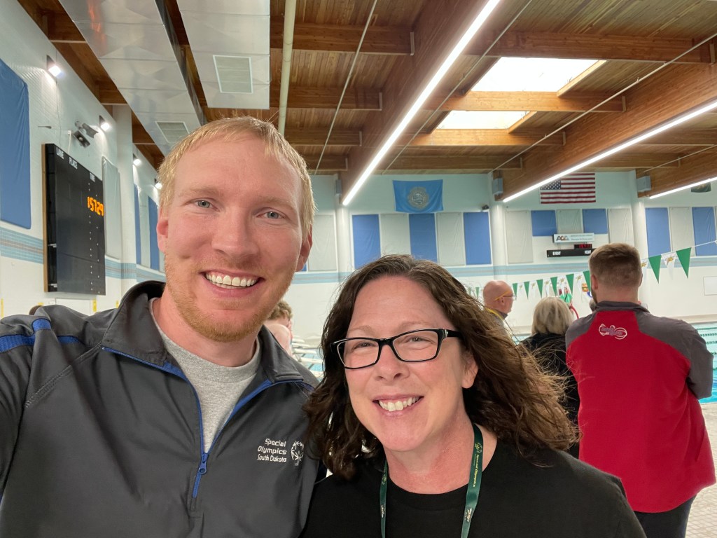 From the State Summer Games, to State Basketball, to Fall Classic, to the past State Winter Games and every area event in between the special part of my time with SOSD didn’t stop within the time with my coworkers. It goes way beyond that. The special part is the time I’ve spent with all of you through it all. By you, I mean all of you Special Olympics athletes in South Dakota. I’ve seen hundreds of you give your best competing and then dance your hearts out after whatever finish you secured that day. The amount of joy you inspired me with carried over to the many hours inside my office. You reminded me why I do what I do. I think my favorite part, however, is you showed me a way to live. It’s one that is unwavering. Some of you met me once but remember my name for life and others it’s an ability to find joy in the simplest things. The hugs, handshakes, and smiles I encountered or witnessed each time we were together is immeasurable.